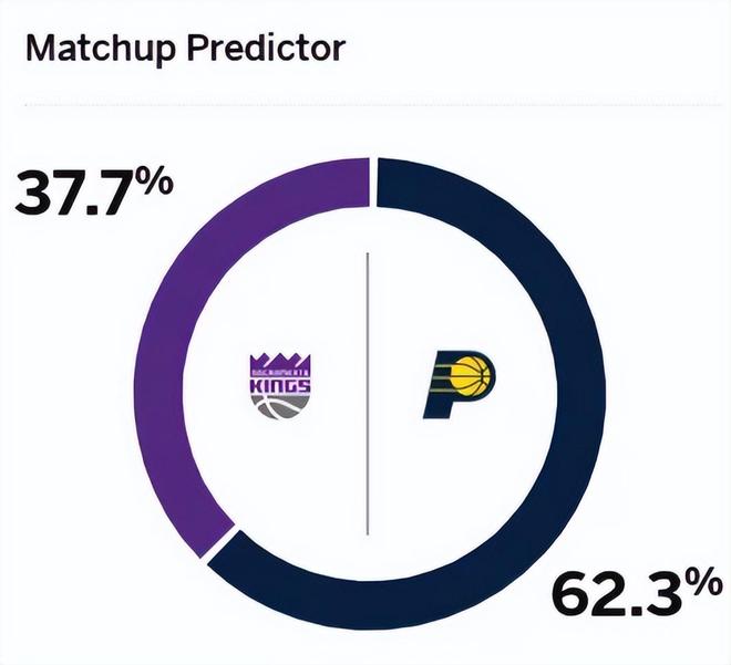 赛前,美媒ESPN对本场比赛进行了胜率预测,步行者胜率意外高达62.3%,国王胜率则仅有37.7%,差距如此大是没想到的。